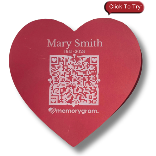 A weather-proof, 4 inch by 4 inch, aluminum heart engraved with your loved one's name, birth year, year of passing and a unique QR code.
